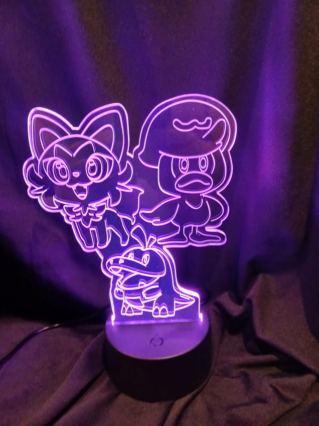 Sprigatito, Quaxliy and Fuecocco of Pokemon 3 D LED night light works on batteries or USB cable (Both supplied with it).